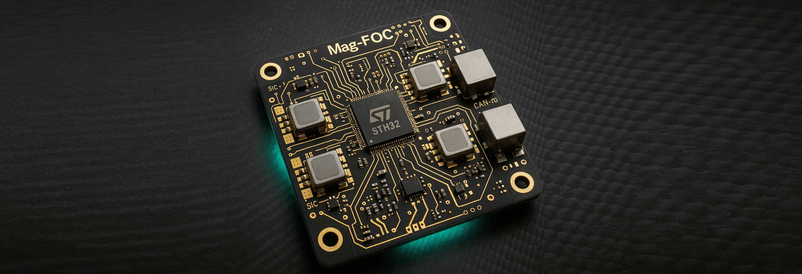 Ultra-Fast • Self-Learning • Cyber-Secure – Mag-FOC™ turns any AeroMag™ Motor into a self-diagnosing, flux-optimised power unit. A dual-bank STM32G4 MCU, SiC half-bridges and Tiny-ML analytics close the Id/Iq loop in 6 µs, slash switching losses and predict Remaining-Useful-Life within ±8 %. One image drives both the LV-300 (48 – 120 V) and HD-800 (600 – 800 V) inverters.
